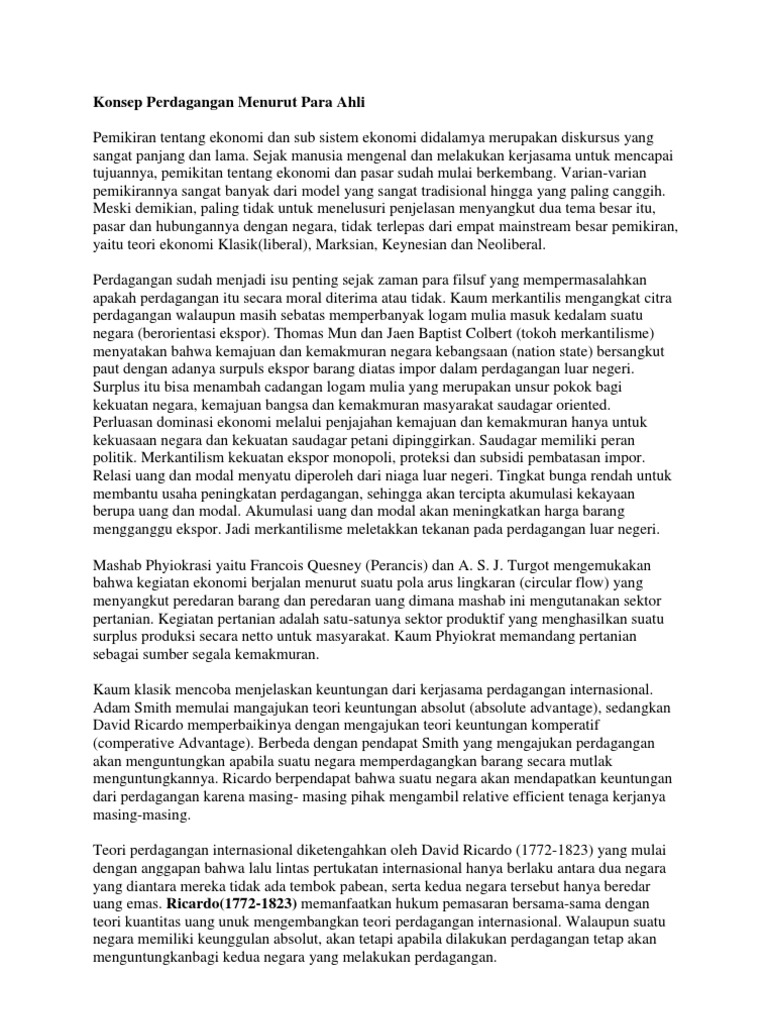 Konsep Perdagangan Menurut Para Ahli