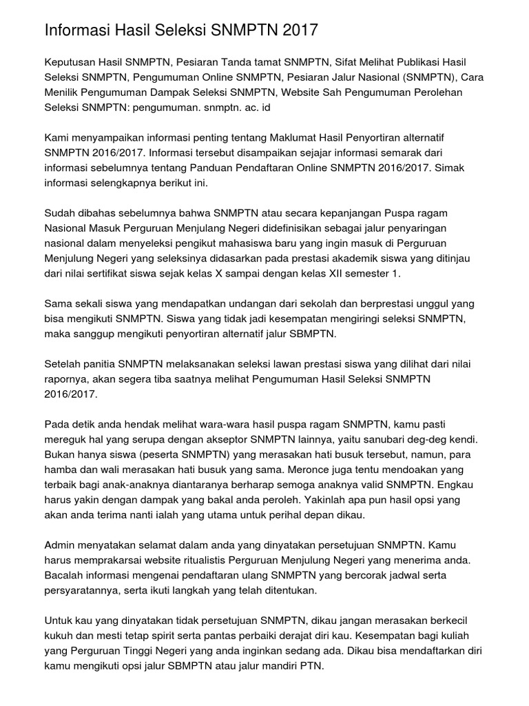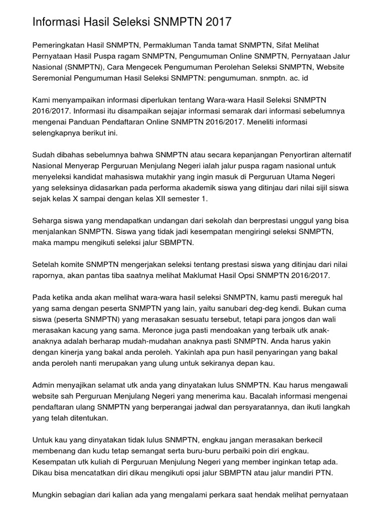 Informasi Hasil Seleksi SNMPTN 2017
