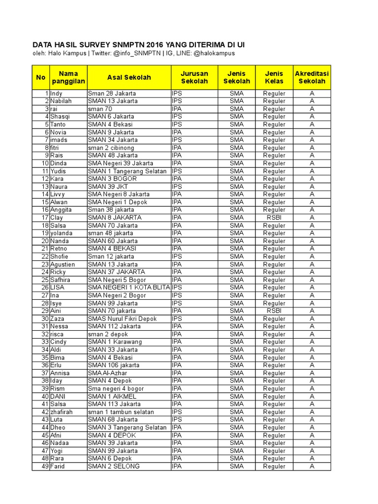Data SNMPTN UI 2016 by @Halokampus | Indonesia