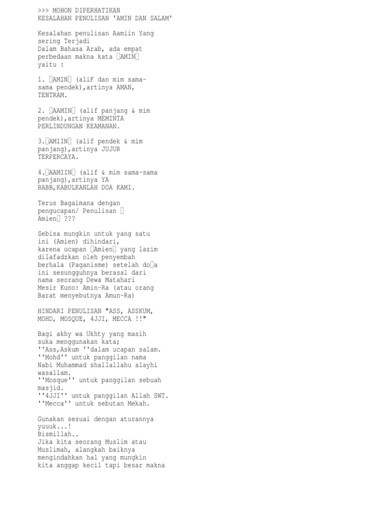 my expression: PENULISAN KATA AAMIIN YANG BENAR MENURUT SYARIAT ISLAM