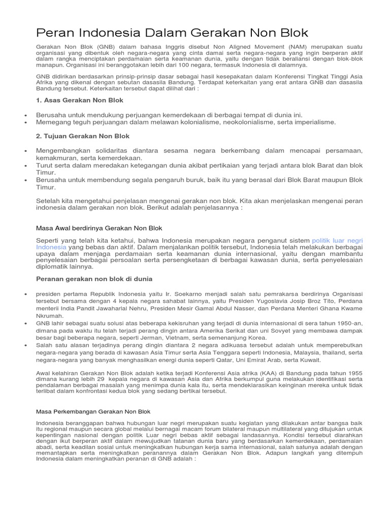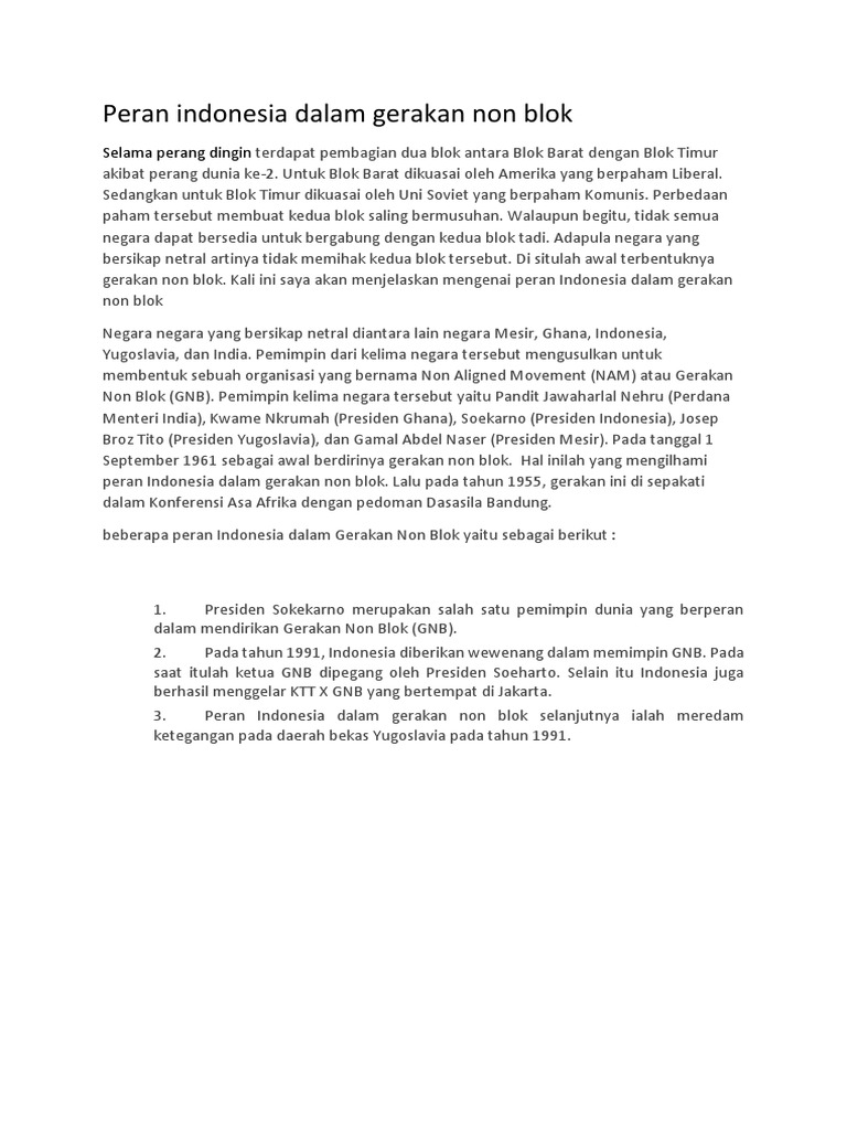 DOC) TUGAS SEJARAH PERAN INDONESIA DALAM GERAKAN NON BLOK | Ab …