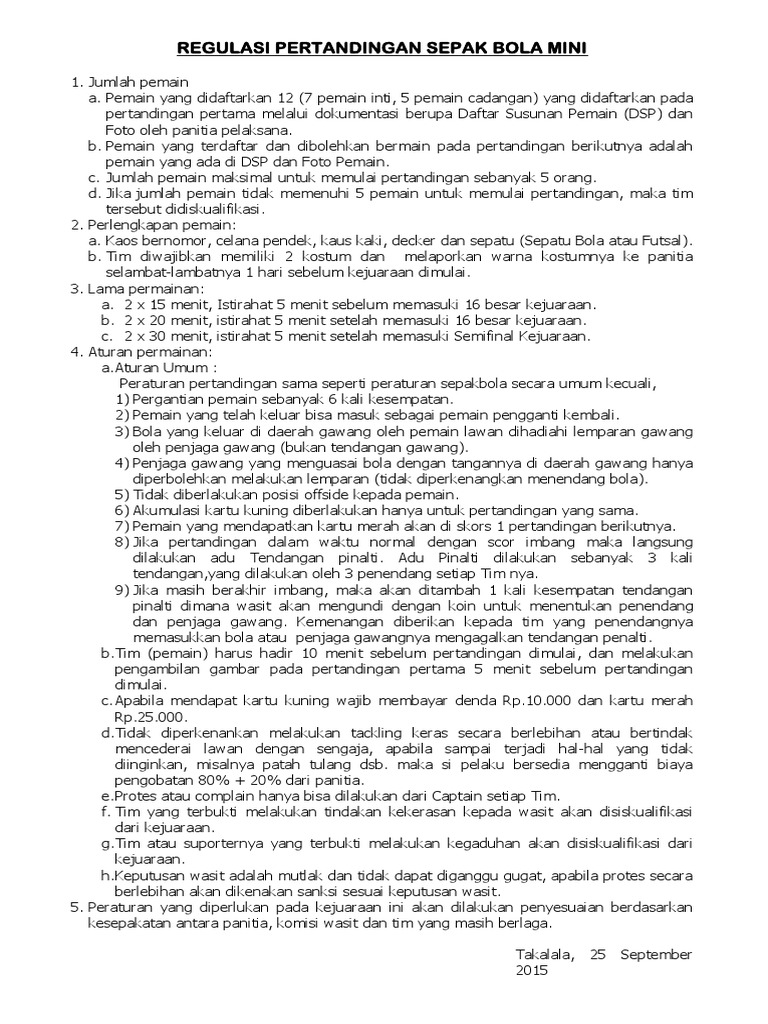 Contoh Peraturan Pertandingan Sepak Bola Mini