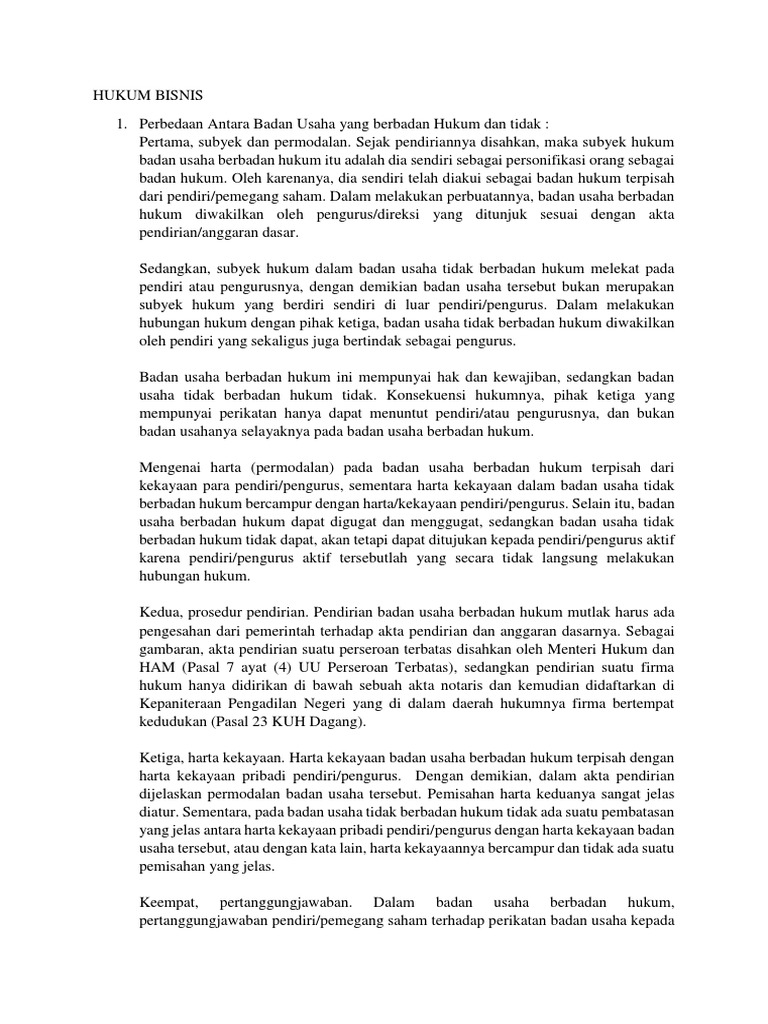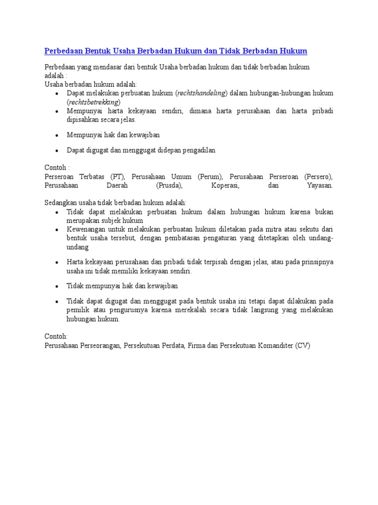 DOC) Perbedaan Bentuk Usaha Berbadan Hukum dan Tidak Berbadan …