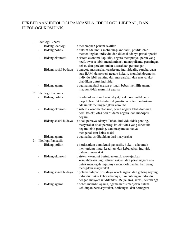 PERBEDAAN IDEOLOGI PANCASILA DENGAN IDEOLOGI KOMUNIS DAN LIB by …