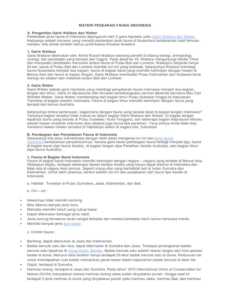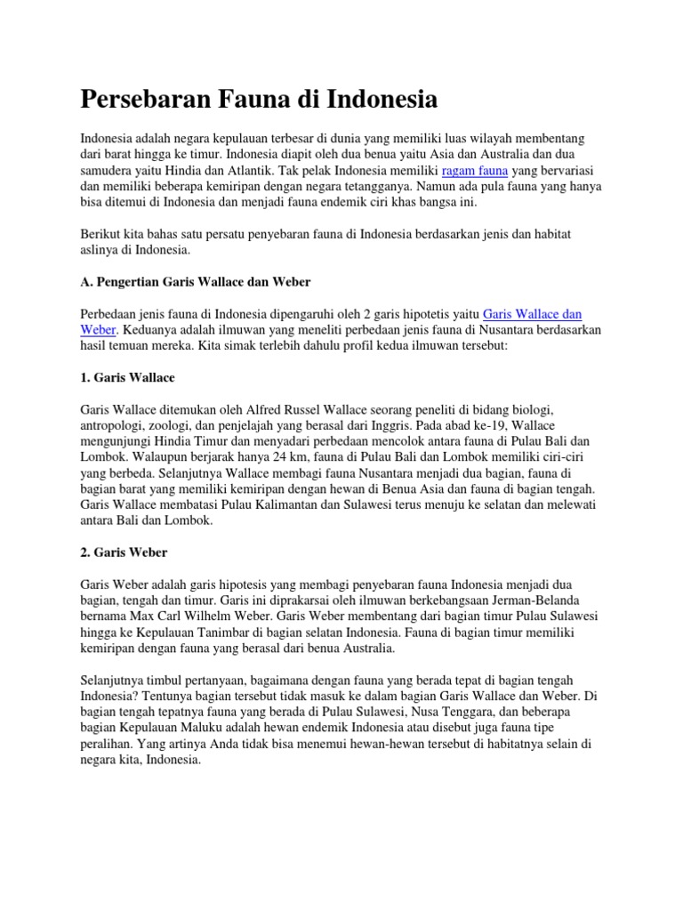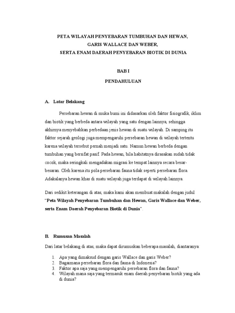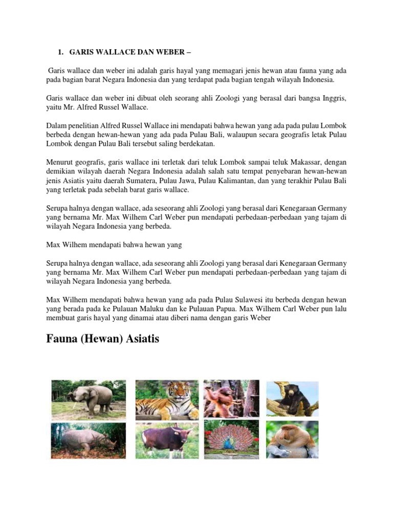 Makalah Persebaran Fauna Menurut Wallace dan Weber.docx - Makalah Persebaran Fauna Menurut Wallace dan Weber BAB I PENDAHULUAN A Latar Belakang | Course Hero