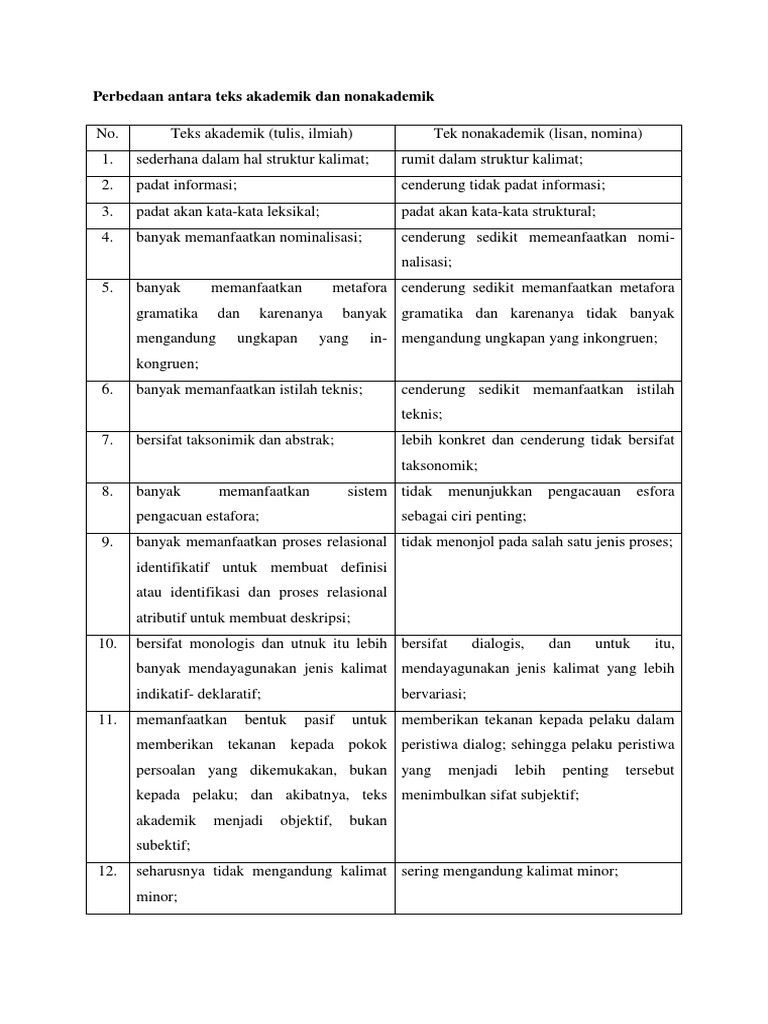 Perbedaan Antara Teks Akademik Dan Nonakademik
