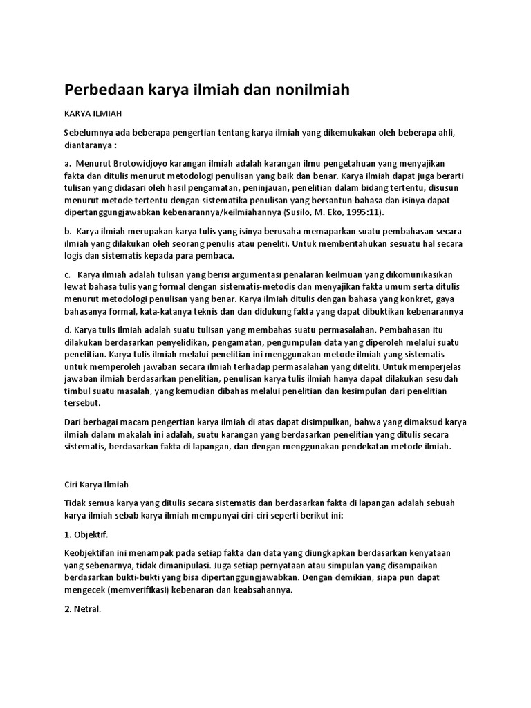 DOC) Perbedaan karya ilmiah, karya ilmiah populer, karya non …