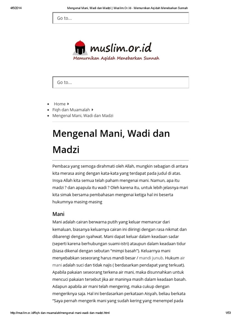 Perbedaan Mani, Madzi & Wadi …. - MuslimAfiyah - Kajian Islam …