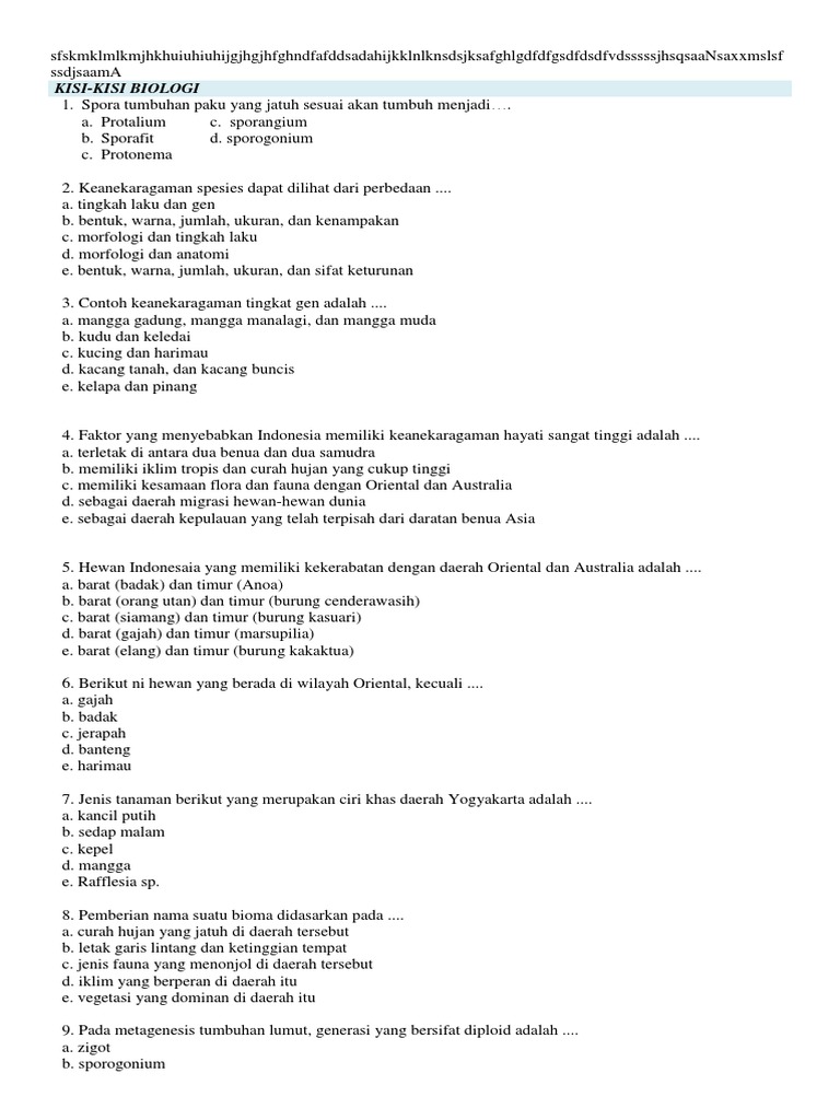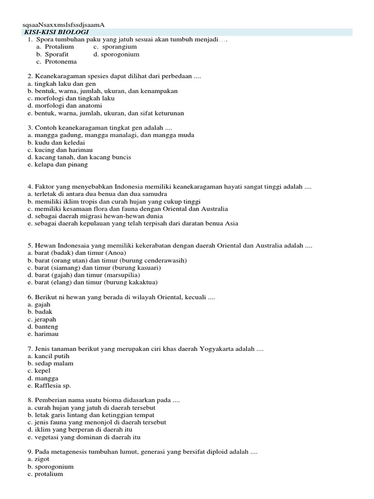 Kisi-Kisi Biologi