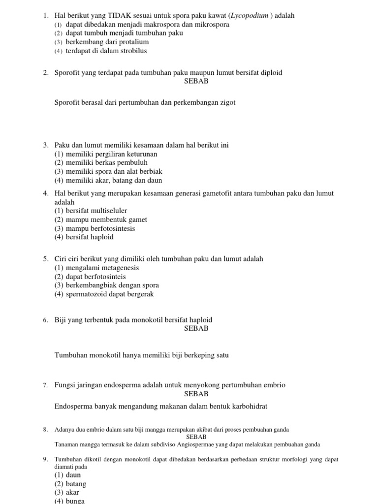 1. Jelaskan perbedaan antara paku homospora, paku heterospora, dan …