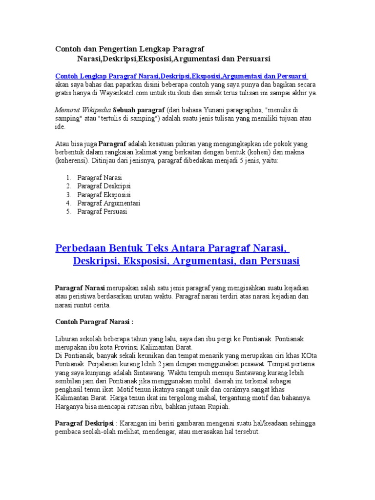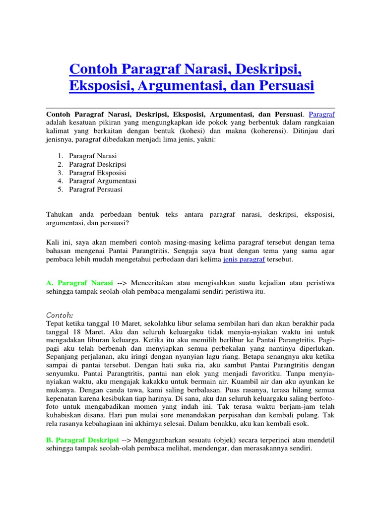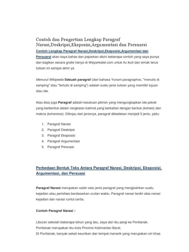Contoh Singkat Paragraf Narasi Deskripsi Eksposisi Argumentasi …