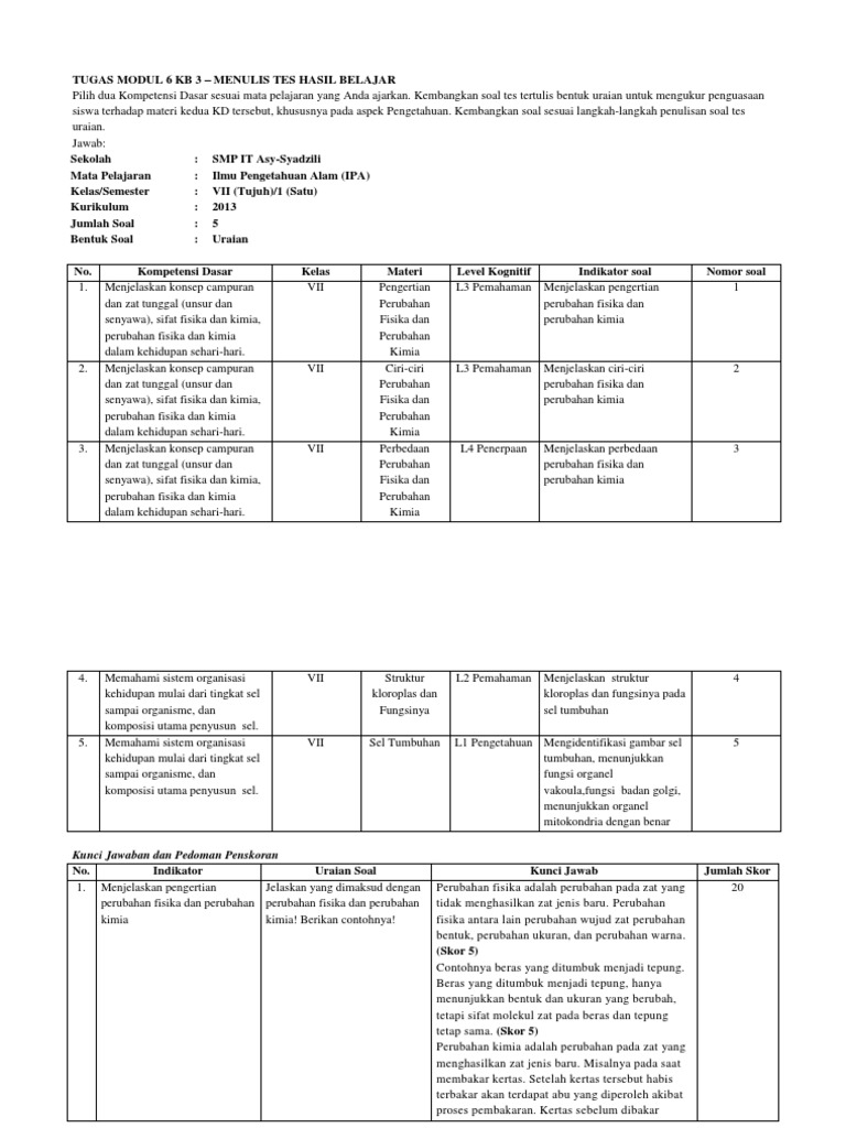 Tugas Modul 6 Kb 3 Menulis Tes Hasil Belajar