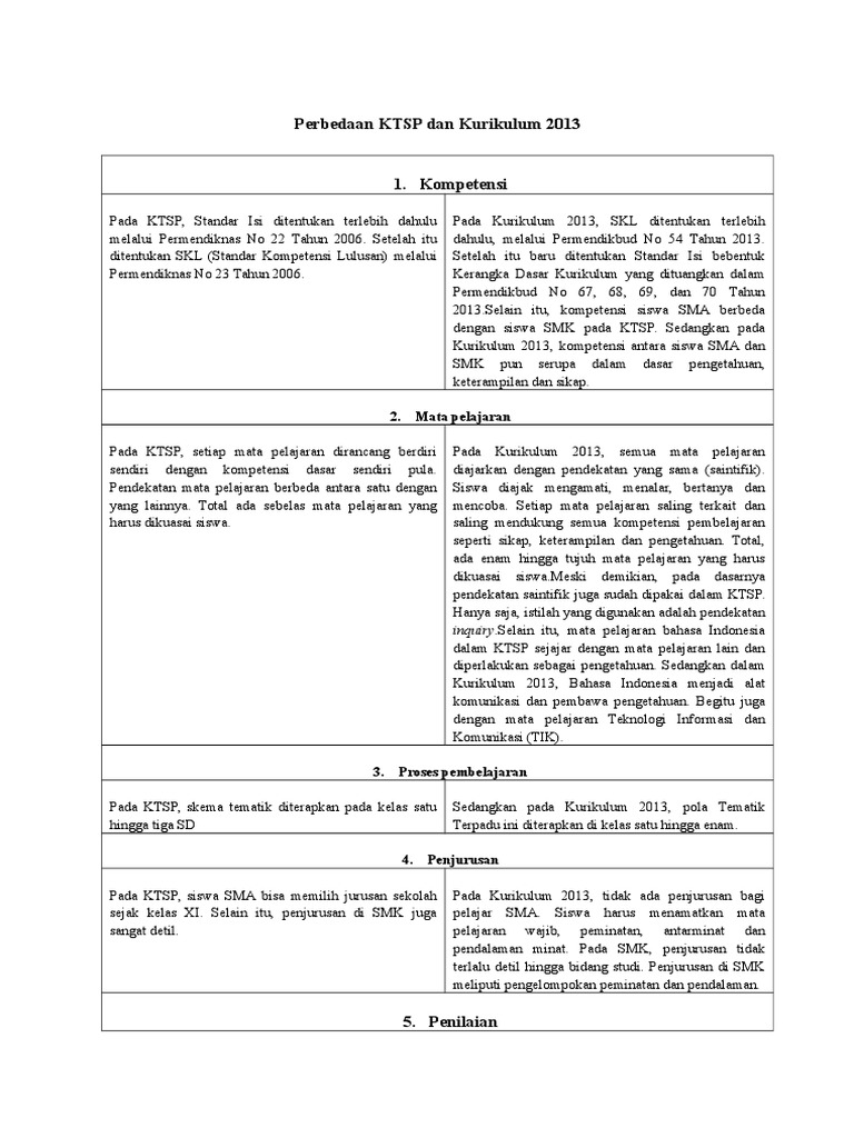 DOC) PERBEDAAN KTSP DAN KURIKULUM 2013 | Deaz Arsityawati …