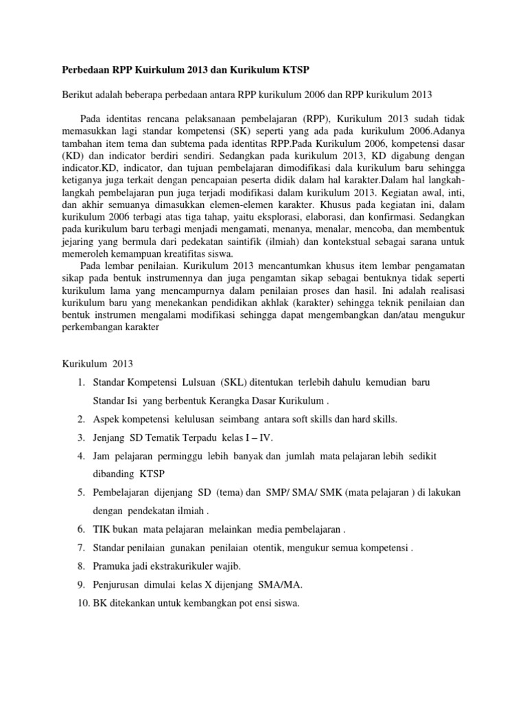Perbedaan Rpp Kurikulum 2013 Dengan Ktsp Pdf - Tips Membedakan