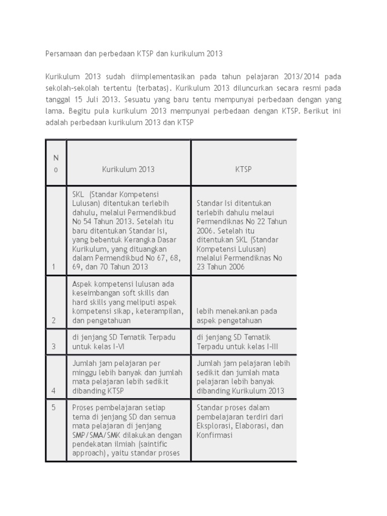 DOC) PERSAMAAN DAN PERBEDAAN ANTARA KTSP DENGAN KURIKULUM 2013 A …