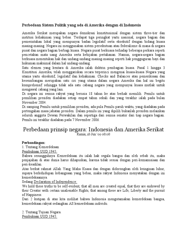 Perbedaan Sistem Politik Yang Ada Di Amerika Dengan Di Indonesia