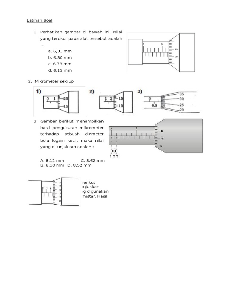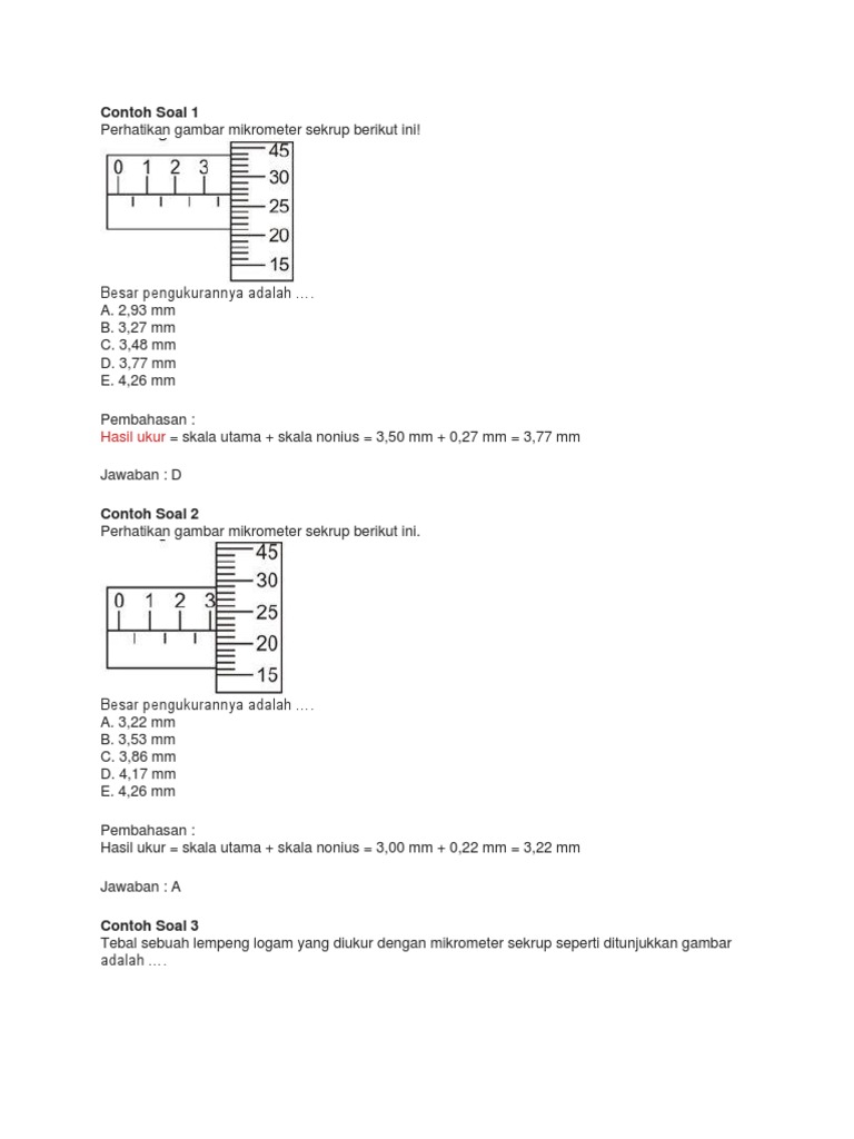 Contoh Soal Mikrometer Sekrup Beserta Jawabannya