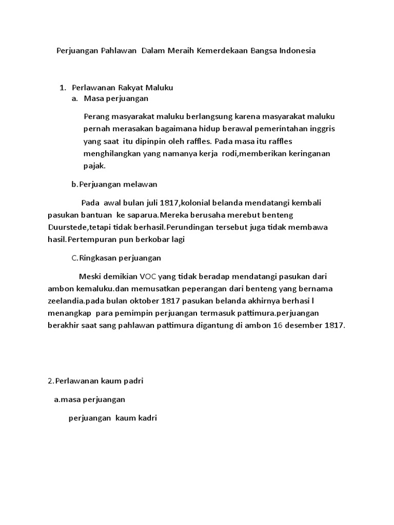 Perlawanan rakyat maluku A) masa perjuangan B) ringkasan …