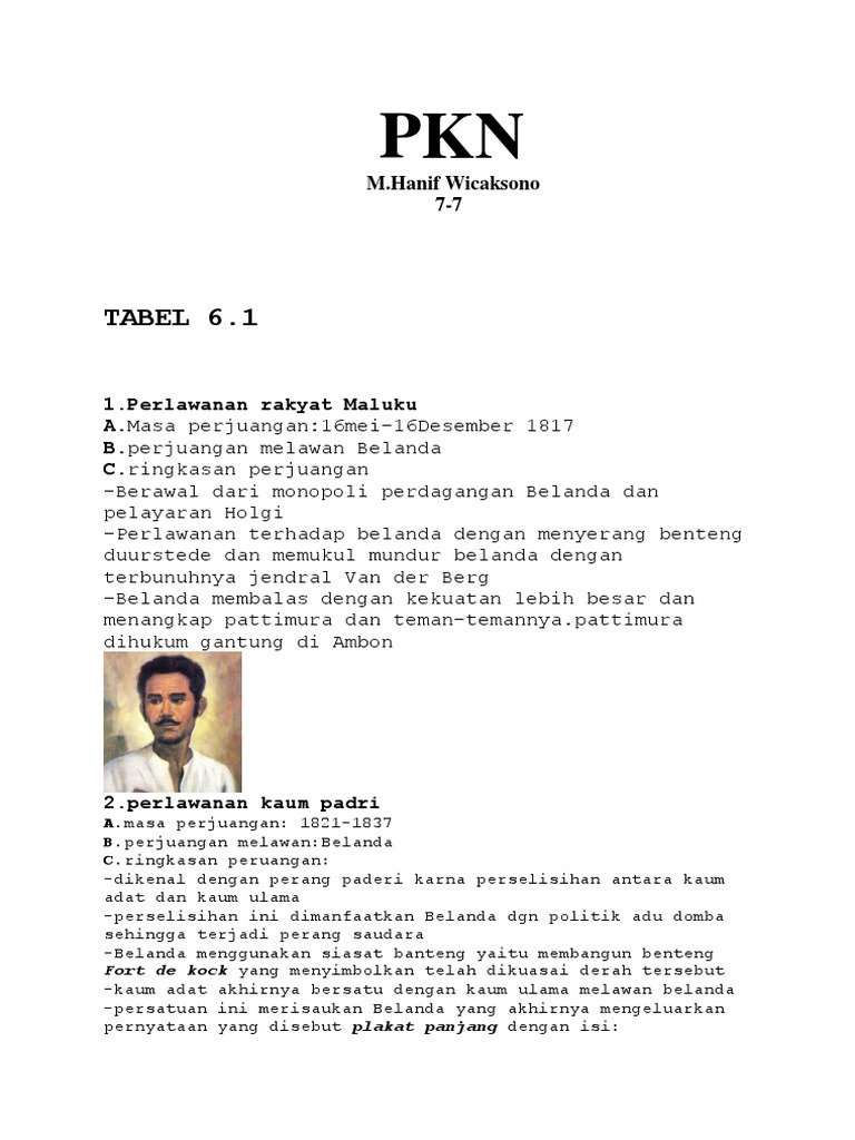 perlawanan rakyat maluku, kaum padiri, pangeran diponegoro,rakyat …