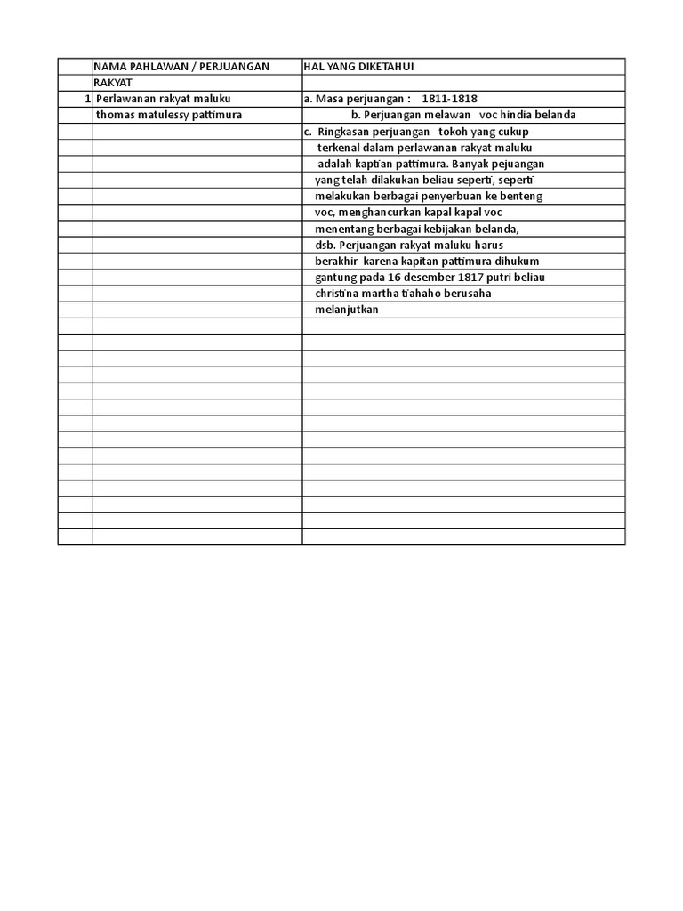 No.PerjuanganHal yang Diketahui1.Perlawanan RakyatMalukua. Masa …