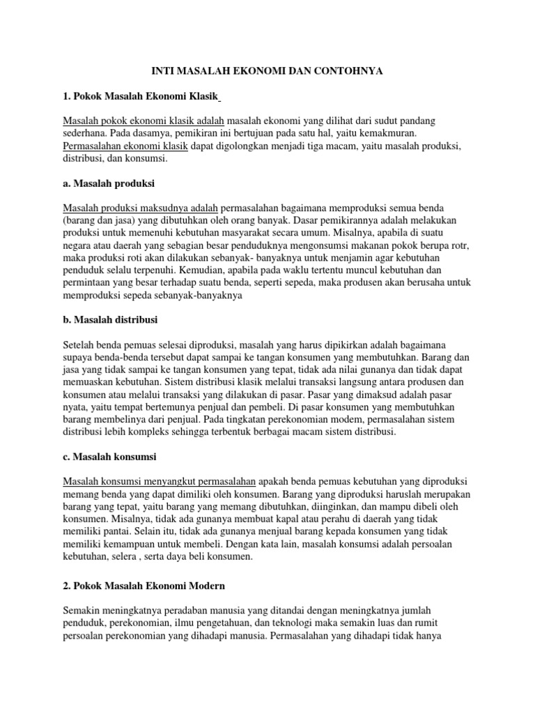 Masalah Pokok Ekonomi Klasik Dan Modern | PERPUSTAKAAN UMUM