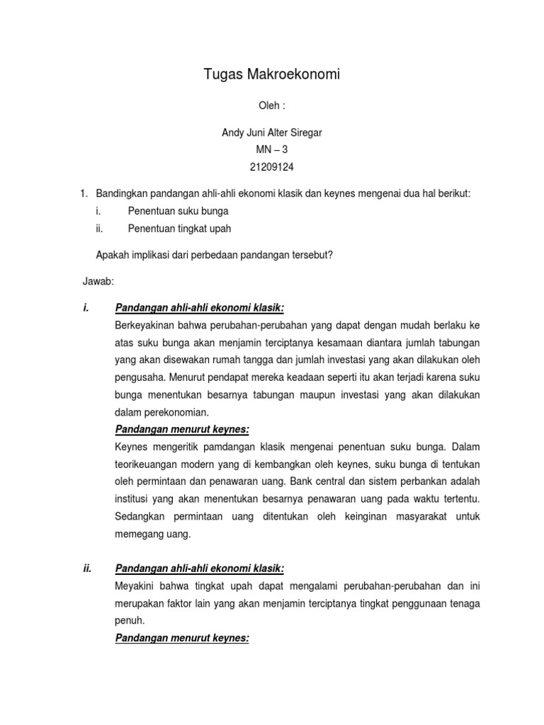 Tugas Makroekonomi: i. Pandangan ahli-ahli ekonomi klasik
