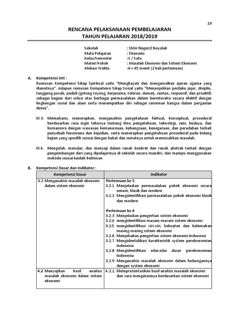 Contoh RPP 2013 - Masalah pokok ekonomi