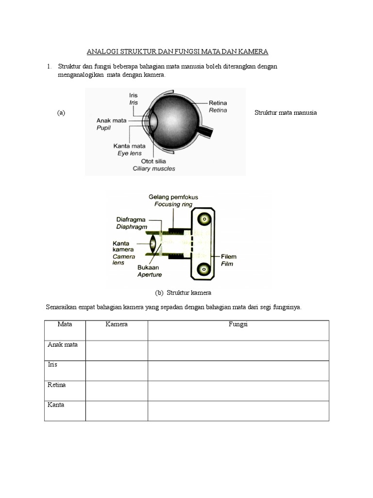 Analogi Struktur Dan Fungsi Mata Dengan Kamera