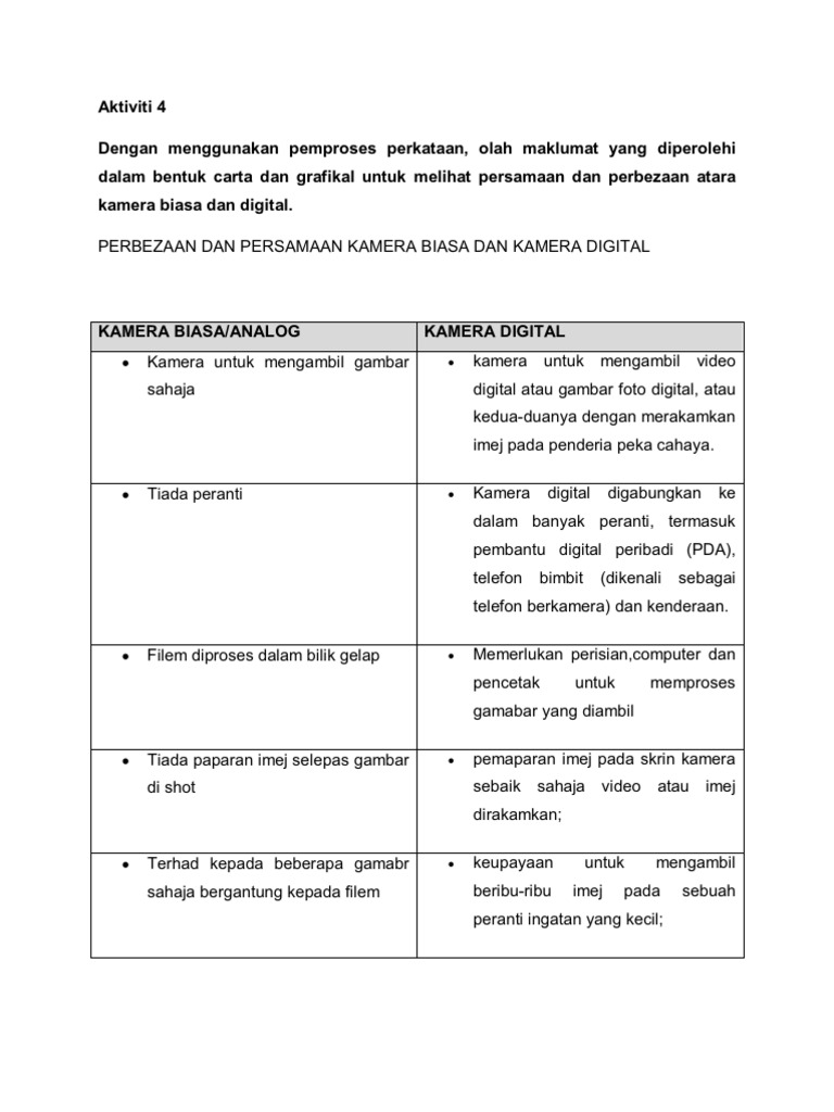 Perbezaan Dan Persamaan Kamera Biasa Dan Kamera Digital - [DOCX …