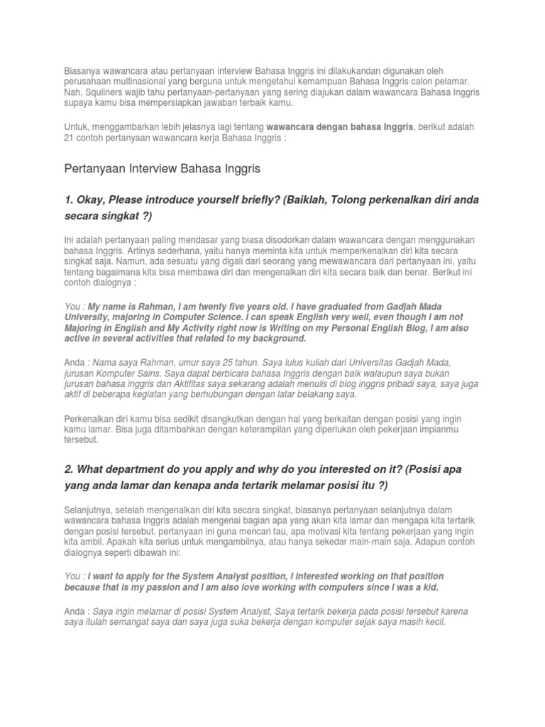 Contoh Interview Kerja Dalam Bahasa Inggris Beserta Artinya …