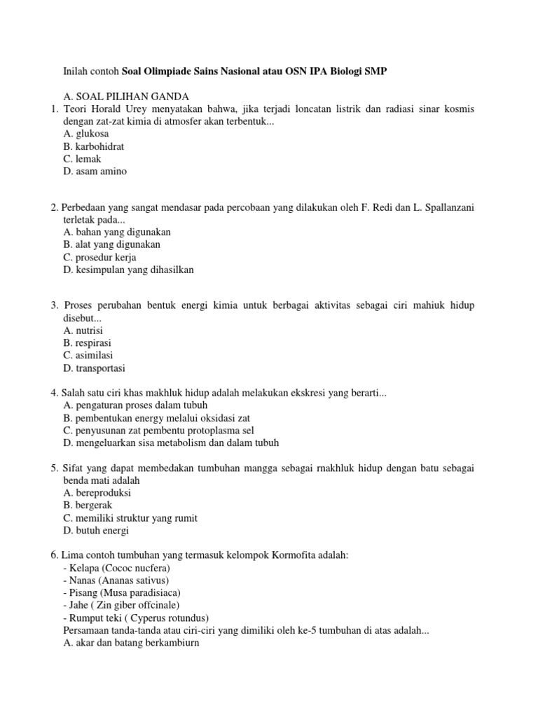 Soal Latihan Biologi SMP [SELESAI] - Bab 2. Ciri-ciri Makhluk …
