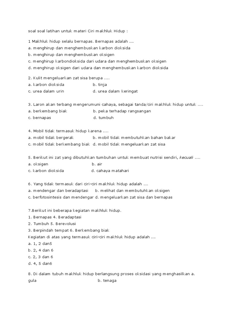Contoh Soal Ciri Ciri Makhluk Hidup - Contoh Soal Terbaru