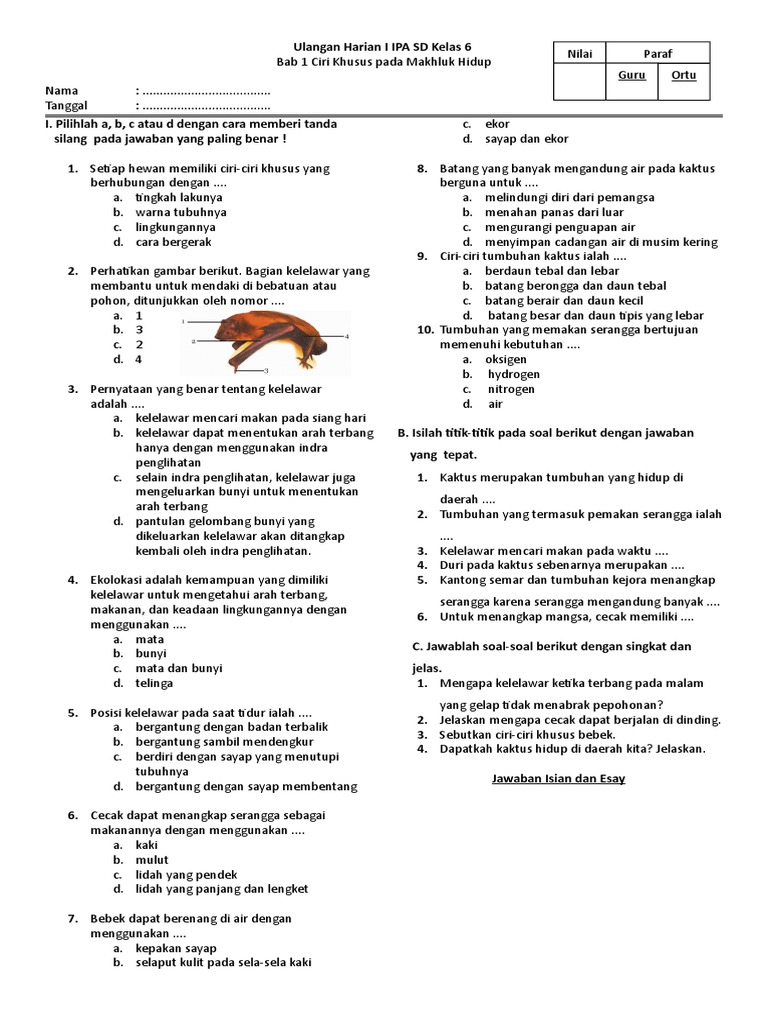 Soal IPA Kelas 6 SD BAB Ciri Khusus Makhluk Hidup dan Lingkungan …