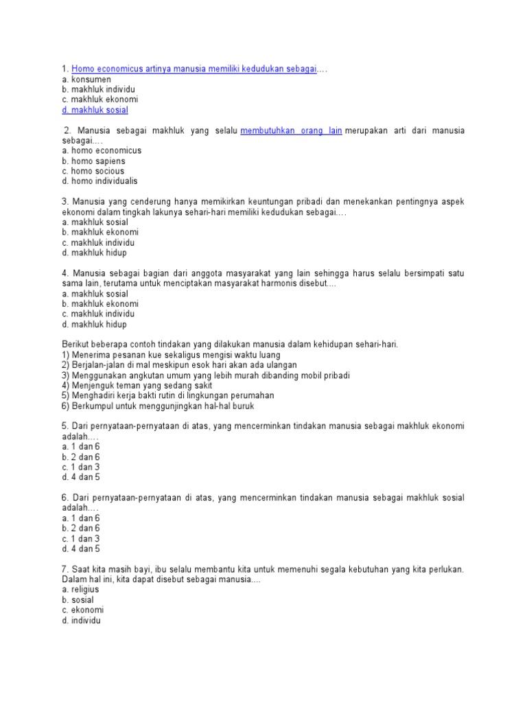 Contoh Soal Dan Jawaban Tentang Manusia Sebagai Mahluk Individu …