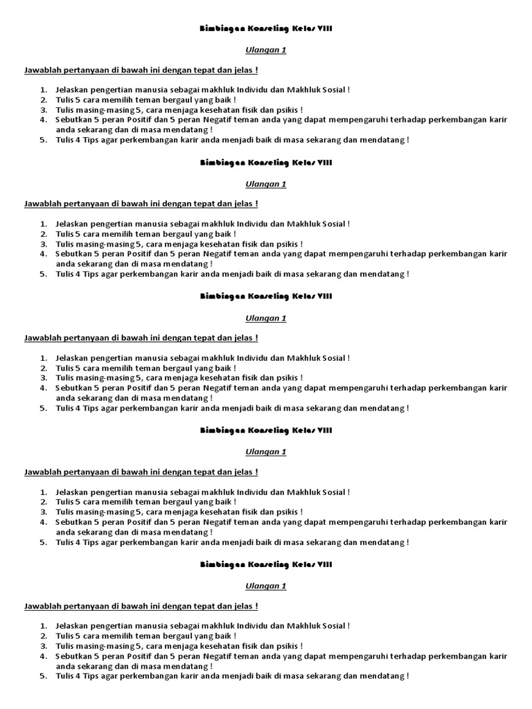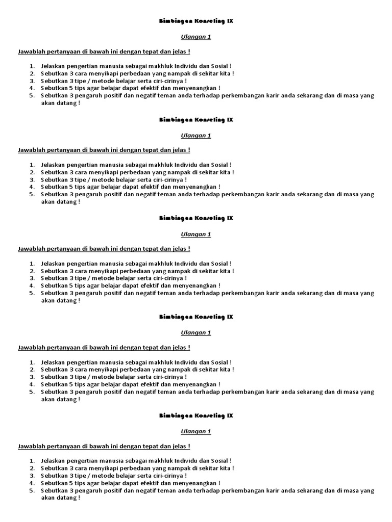 Ulangan 1 Bimbingan Konseling