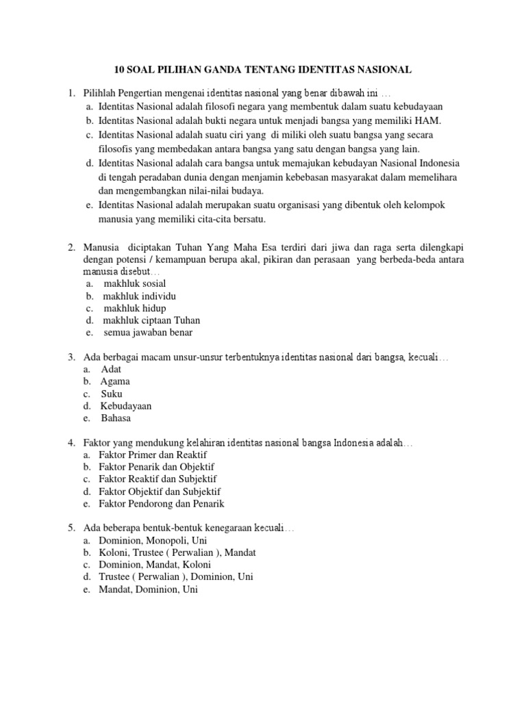 10 Soal Pilihan Ganda Tentang Identitas Nasional
