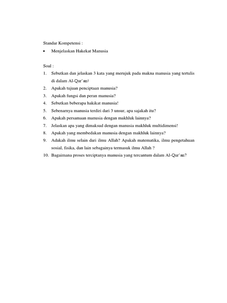 Soal Dan Jawaban Agama Hakekat Manusia