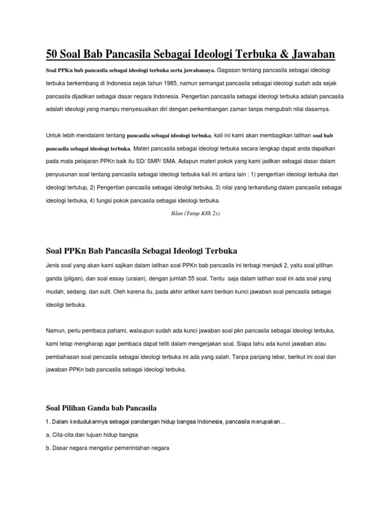 50 Soal Bab Pancasila Sebagai Ideologi Terbuka & Jawaban - Muttaqin id