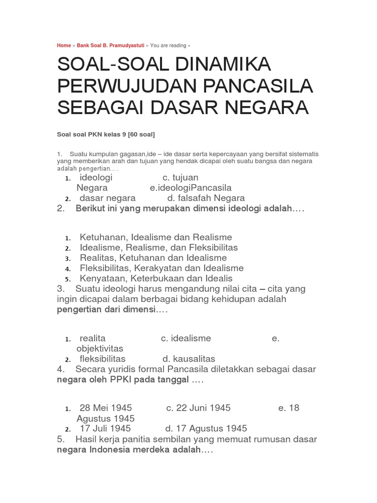 Soal Dan Jawaban Tentang Pancasila Sebagai Dasar Negara …