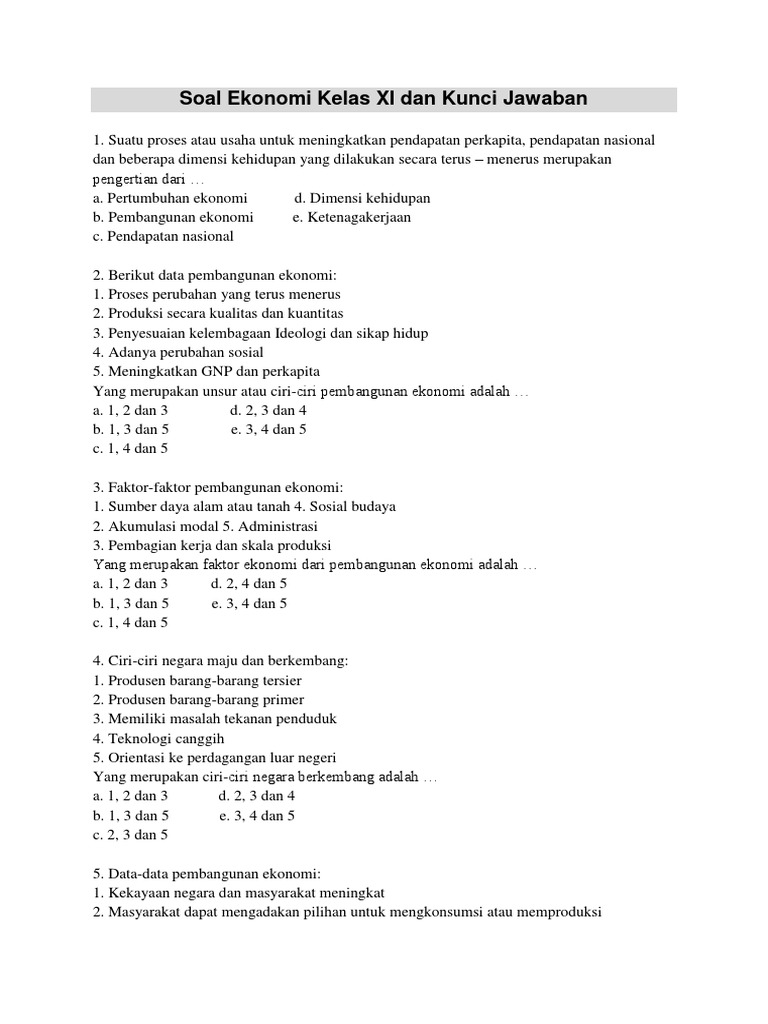 Contoh Soal Dan Jawaban Pertumbuhan Dan Pembangunan Ekonomi …