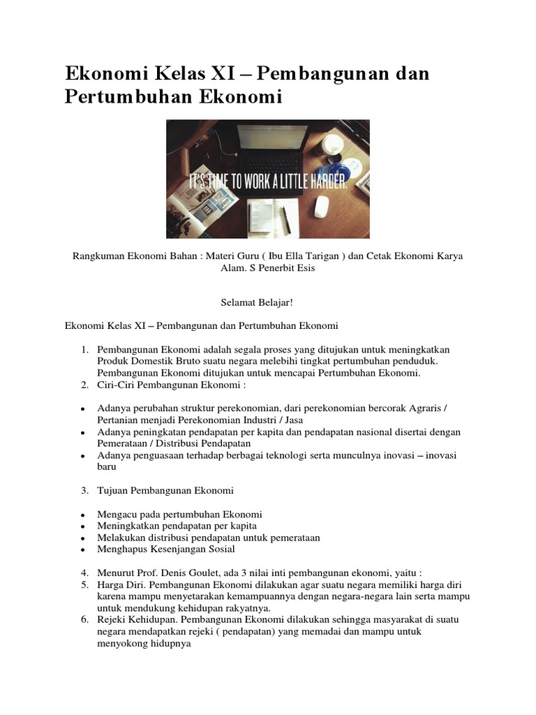 Ekonomi Kelas XI Semester 1 : PEMBANGUNAN EKONOMI (definisi …