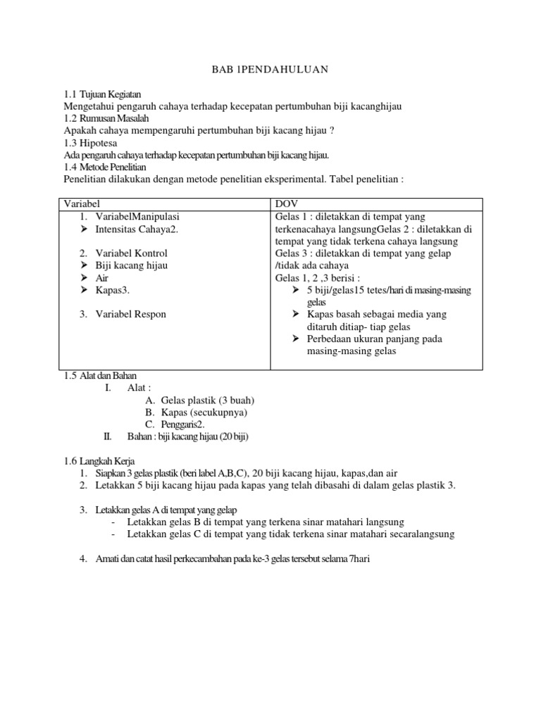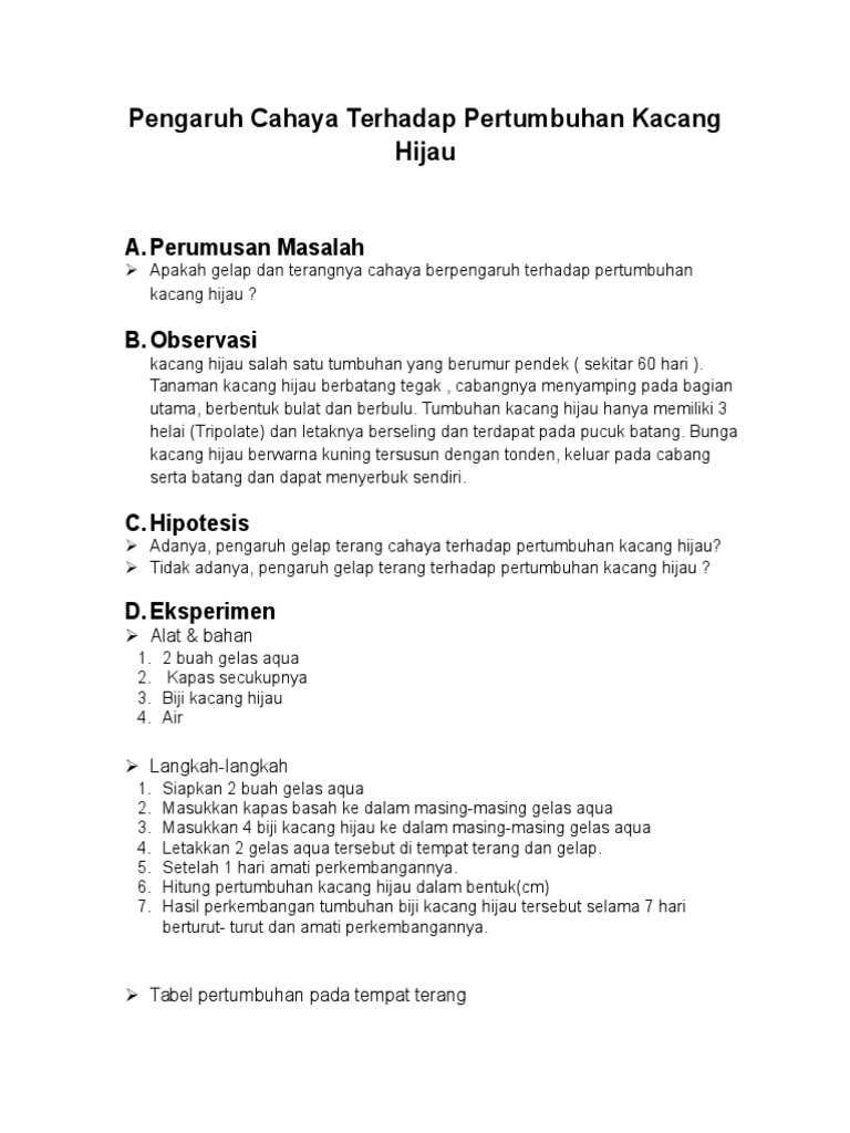 Contoh Laporan Hasil Pengamatan Pertumbuhan Kacang Hijau - Bagikan …