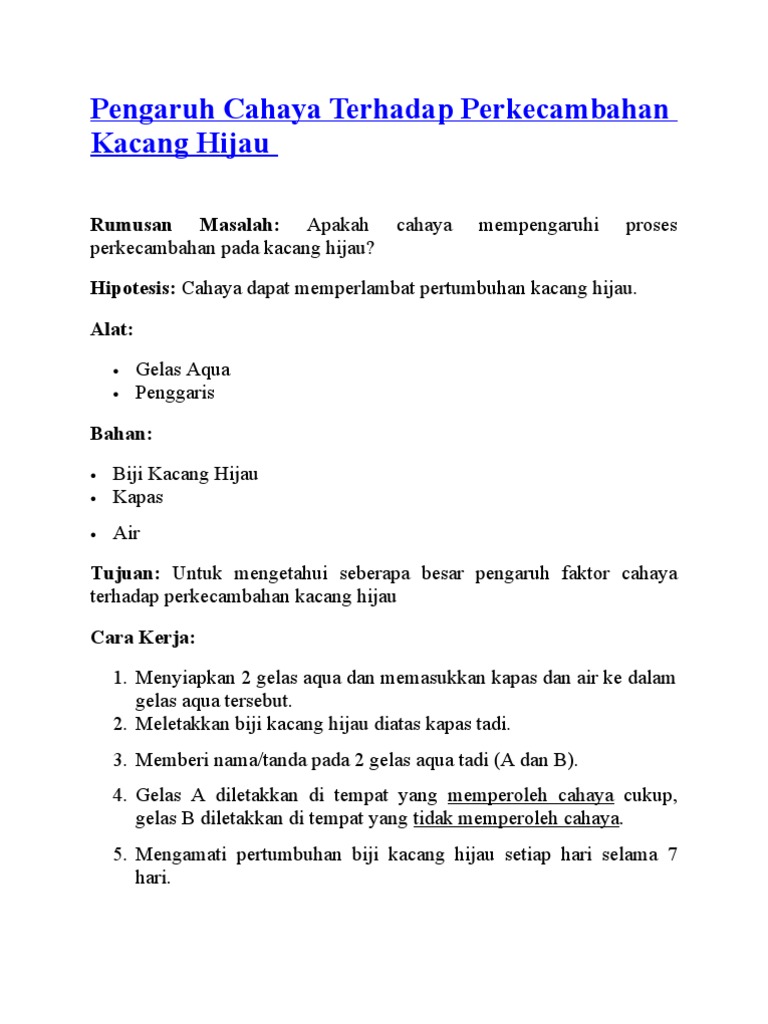pengaruh cahaya terhadap tumbuhan kacang hijau - PDF Free Download