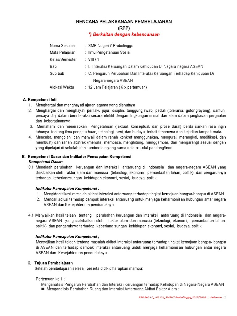 RPP No.003 K-13 IPS-VIII; Pengaruh Perubahan Dan Interaksi …