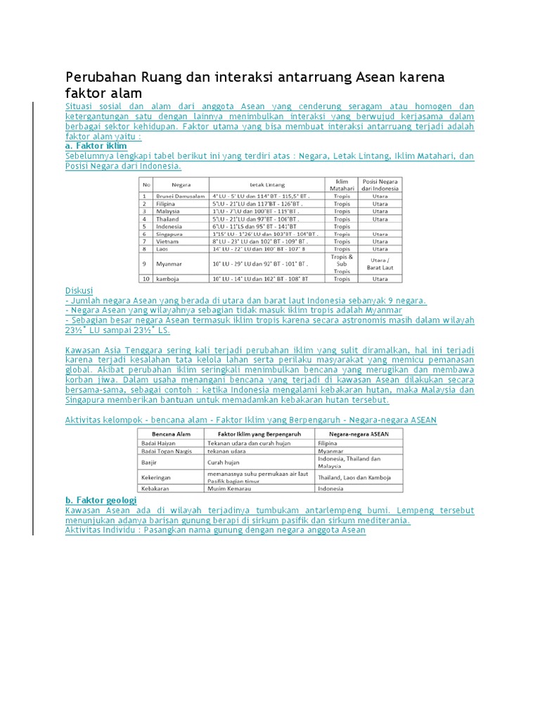 Perubahan Ruang Dan Interaksi Antarruang Asean Karena Faktor Alam