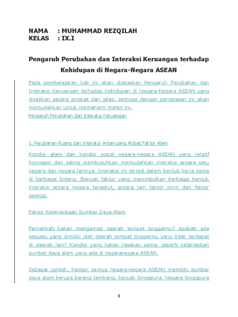 Pengaruh Perubahan dan Interaksi Keruangan Negara ASEAN - Portal …