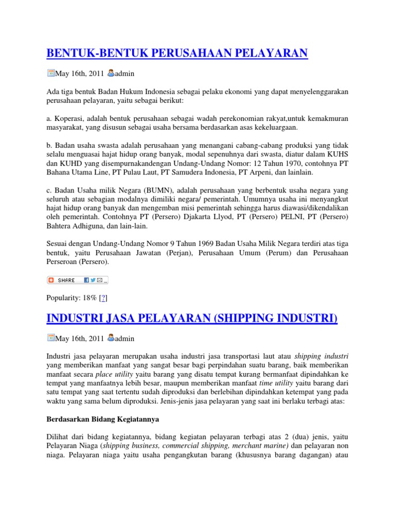 bentuk-bentuk perusahaan pelayaran