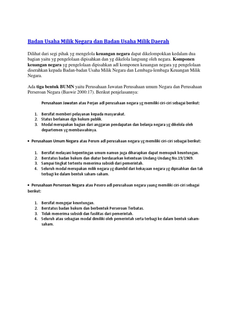 Jenis dan Ciri-Ciri Badan Usaha Milik Negara (BUMN) - Jurnal