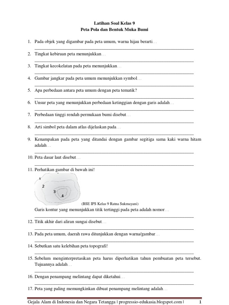 SOAL DAN JAWABAN IPS KELAS 9 BAB 9 TENTANG INTERPRETASI PETA TENTANG BENTUK DAN POLA MUKA BUMI
