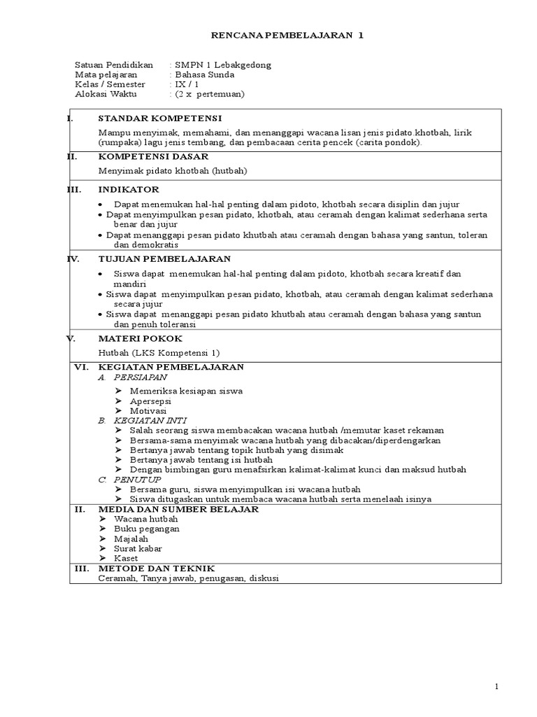 RENCANA PEMBELAJARAN 1 viewTuliskeun ringkesan eusi hutbah ku basa …